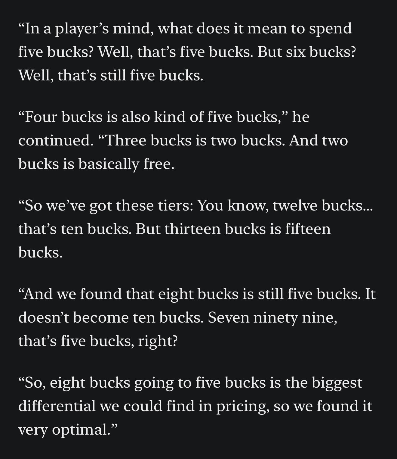Nah. But I think the difference in this specific case is that if you’re already kinda wanting to buy something and it’s 8 dollars, you might convince yourself that it’s basically just 5 dollars to justify the purchase.