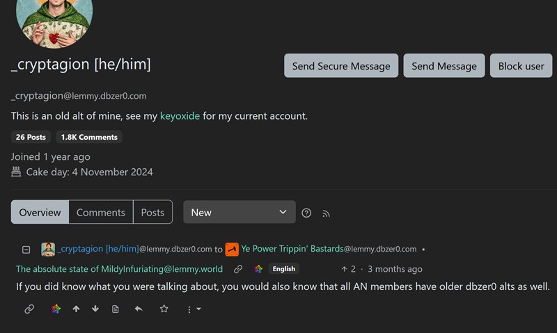 He moved to anarchist.nexus first (@_cryptagion@anarchist.nexus ) where he’s still a mod on db0’s instance. Idk what his piefed account is that he’s apparently moved to.