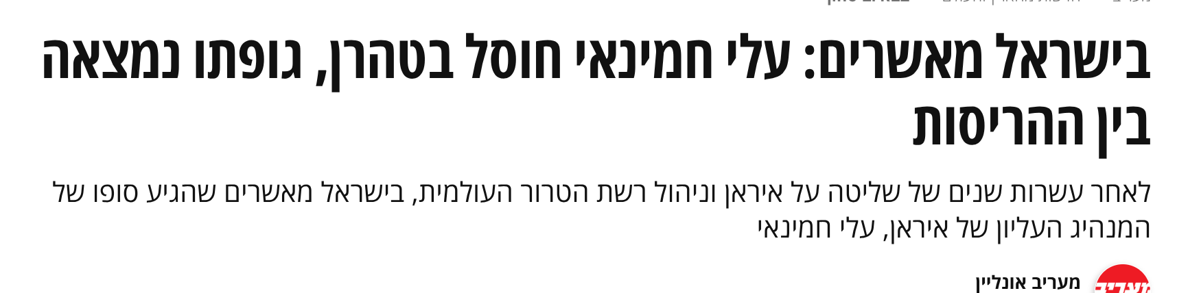 Headline of Maariv newspaper is now “Khamenei is killed”