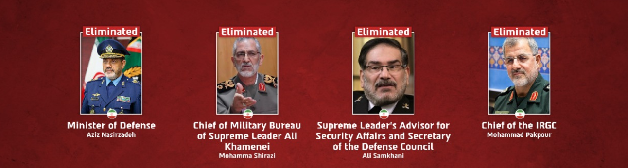 The IDF said several Iranian leaders are killed, including the Defense Minister and Ali Shamkhani, the closest advisor of the Ayatollah