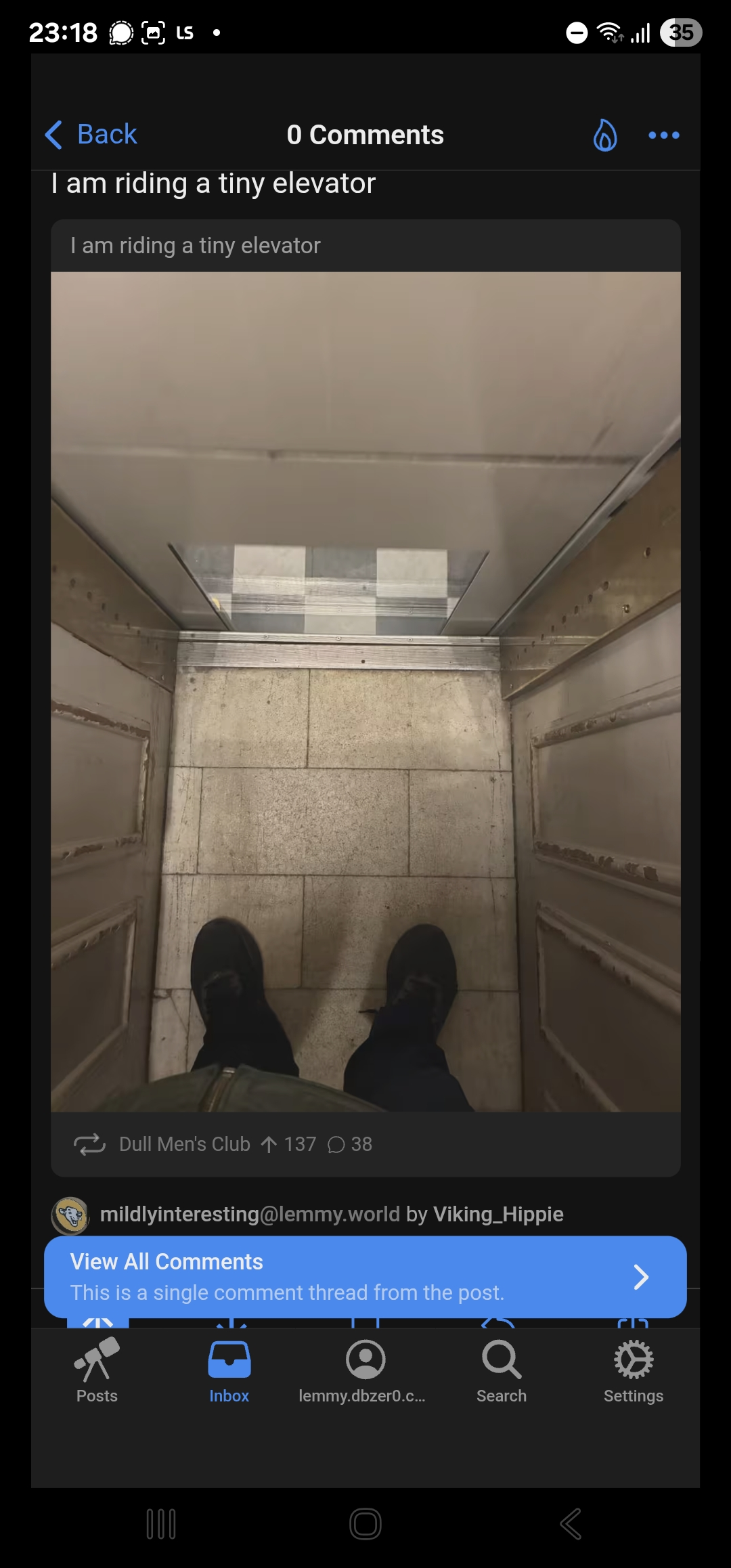 Viking_Hippie@lemmy.dbzer0.com to Mildly Interesting@lemmy.world · 18 days agoI am riding a tiny elevatorlemmy.imagisphe.reexternal-linkmessage-square14linkfedilinkarrow-up1151arrow-down14file-text