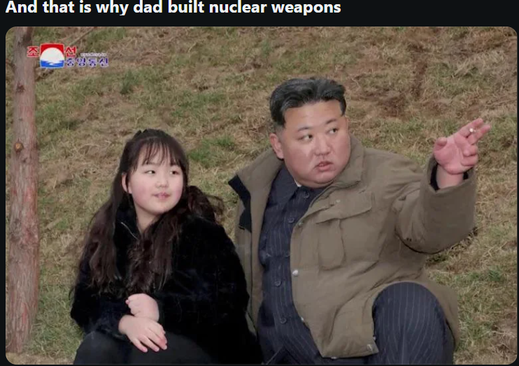 Ya and I don’t think getting every country a nuke is realistic. There’s a reason why we started disarming the nukes and getting rid of them. And like the reason is now they are not OK to have around unstable government. The US is an unstable government with the most advanced nukes in the world. And more of them than most countries combined. It’s just not really a sane move to be trying to arm yourself with weapons of mass destruction in the face of an unstable country willing to use them.