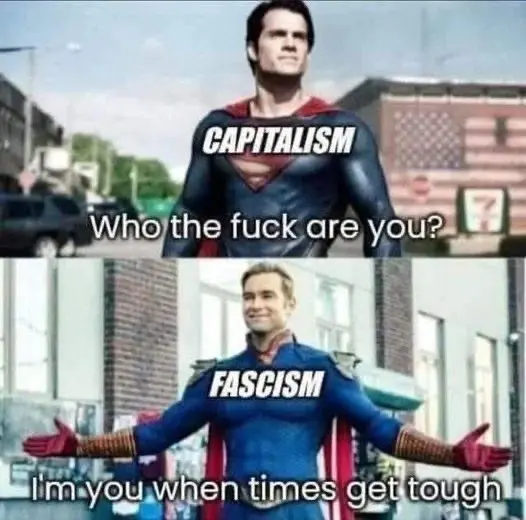 That said, you are missing one key element from the meme. People aren’t voting for authoritarianism because they are unhappy but because they have reaped the fruits of authoritarianism/imperialism on a global scale and they want the system to find new people to exploit.