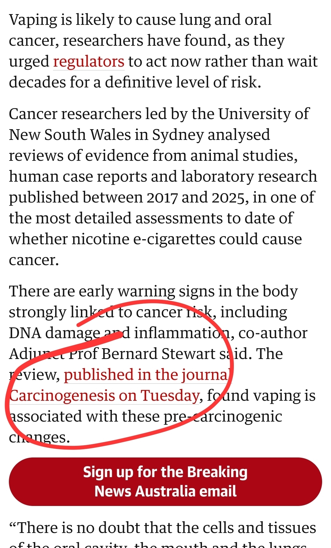Did their research for them, article here, paywalled, abstract only (not even citations). They say 3 cases of oral cancer in the abstract, case studies not stats. They also highlight 100x the level of Cotinine (the predominant metabolite of nicotine, so this is shocking I tell you. Shocking, interestingly it’s currently being studied as a treatment for depression, post-traumatic stress disorder (PTSD), schizophrenia, Alzheimer’s disease and Parkinson’s disease.).