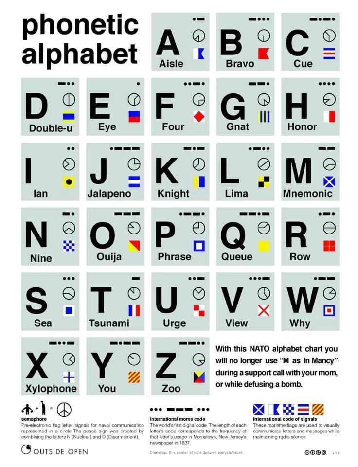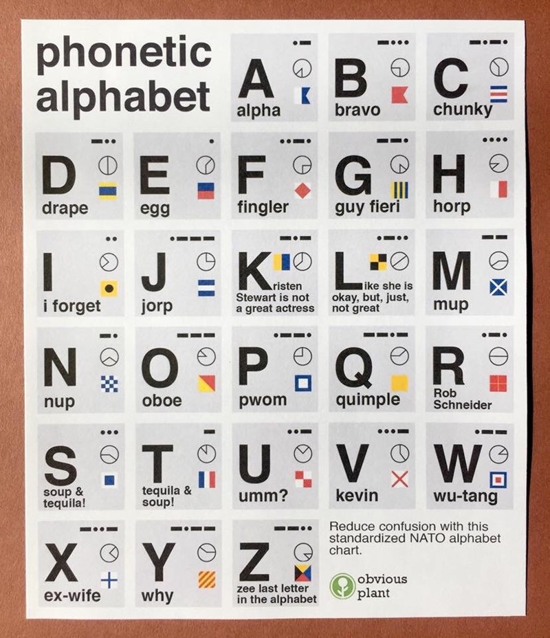As someone who had to learn the actual NATO alphabet, if I look too hard at this, I’m likely to give myself a stroke.