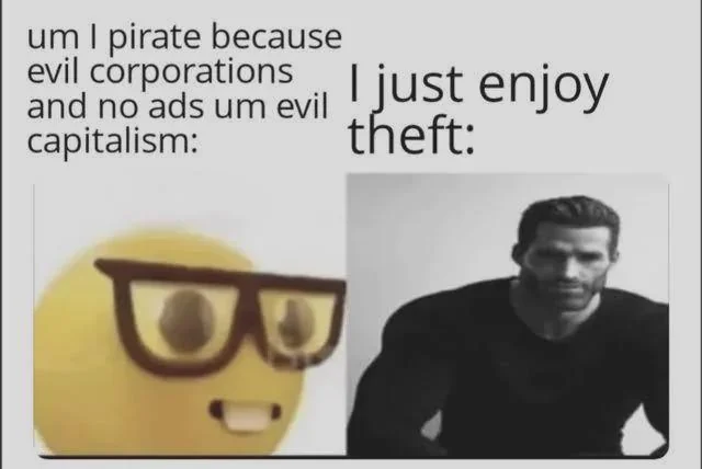 the pirates from reddit who have can’t hear a pirate talk about ethics and morality without shitting their fucking pants should’ve just stayed on the absolute cess pit that is r/piracy tbh. you’re screaming as loud as you can “i’m a fence sitting centrist coward!” as if you aren’t in the majority. some of us aren’t afraid of politics. simply get over it