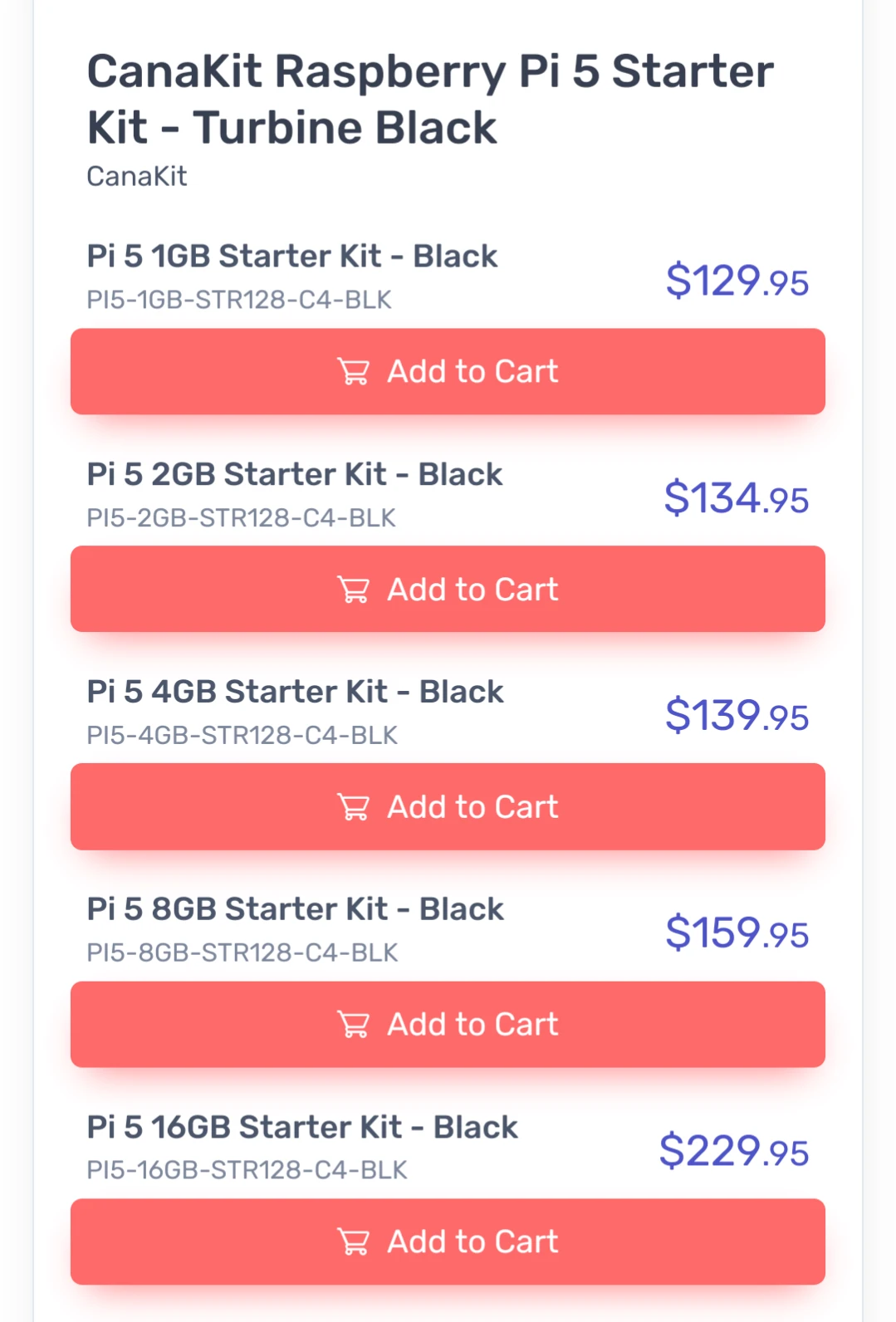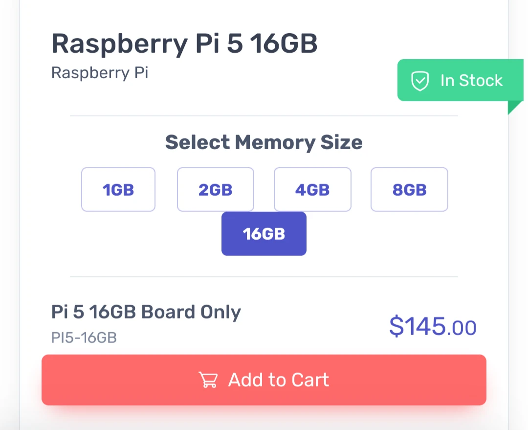 The 16gb rpi 5 on its own with no extras is $145 and the 4gb on its own with no extras is $70.