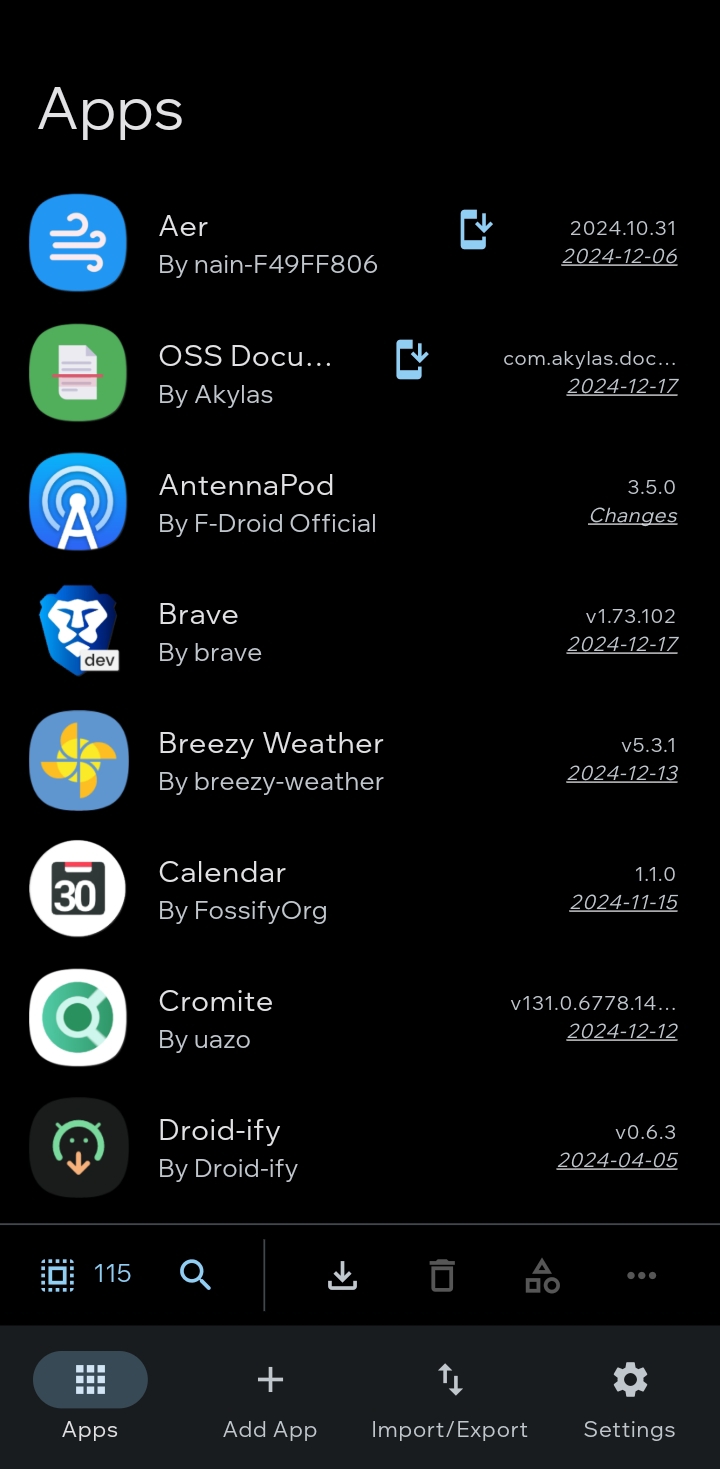 Fdroid official app is still outdae to me. Repo doesn’t automatically update itself and so on. I shifted to Droid-ify. Try that