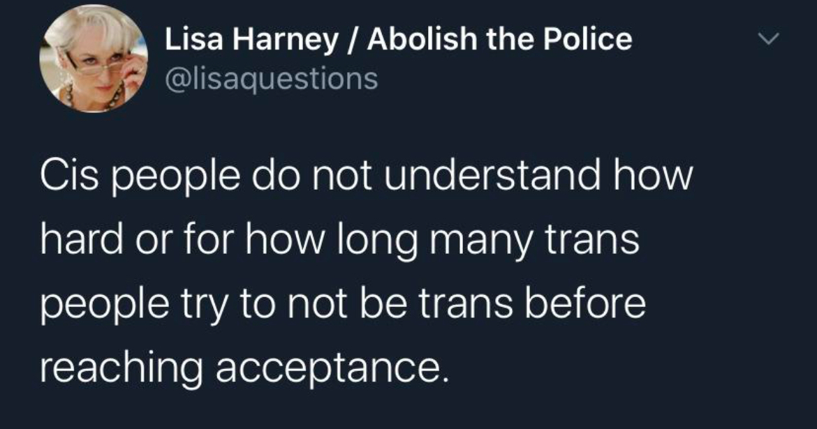 Oof, you got me with this one. I’m visiting family for Memorial Day weekend, and the relentless misgendering is wearing on me. Tbf, I can’t blame them, because I haven’t come out to any of them yet