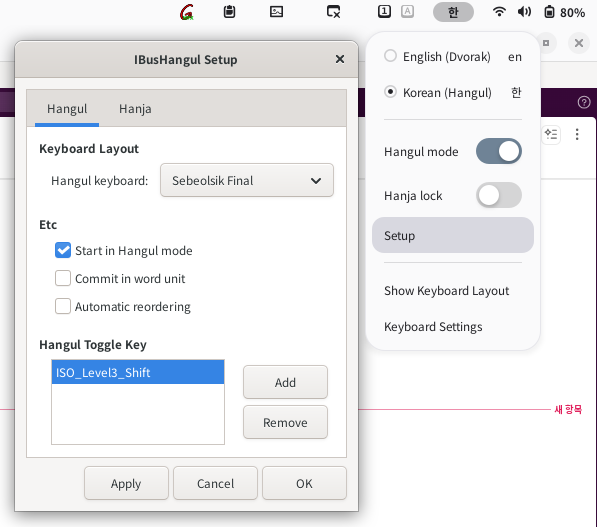 Click “Add” and press “한/영” key on the keyboard.