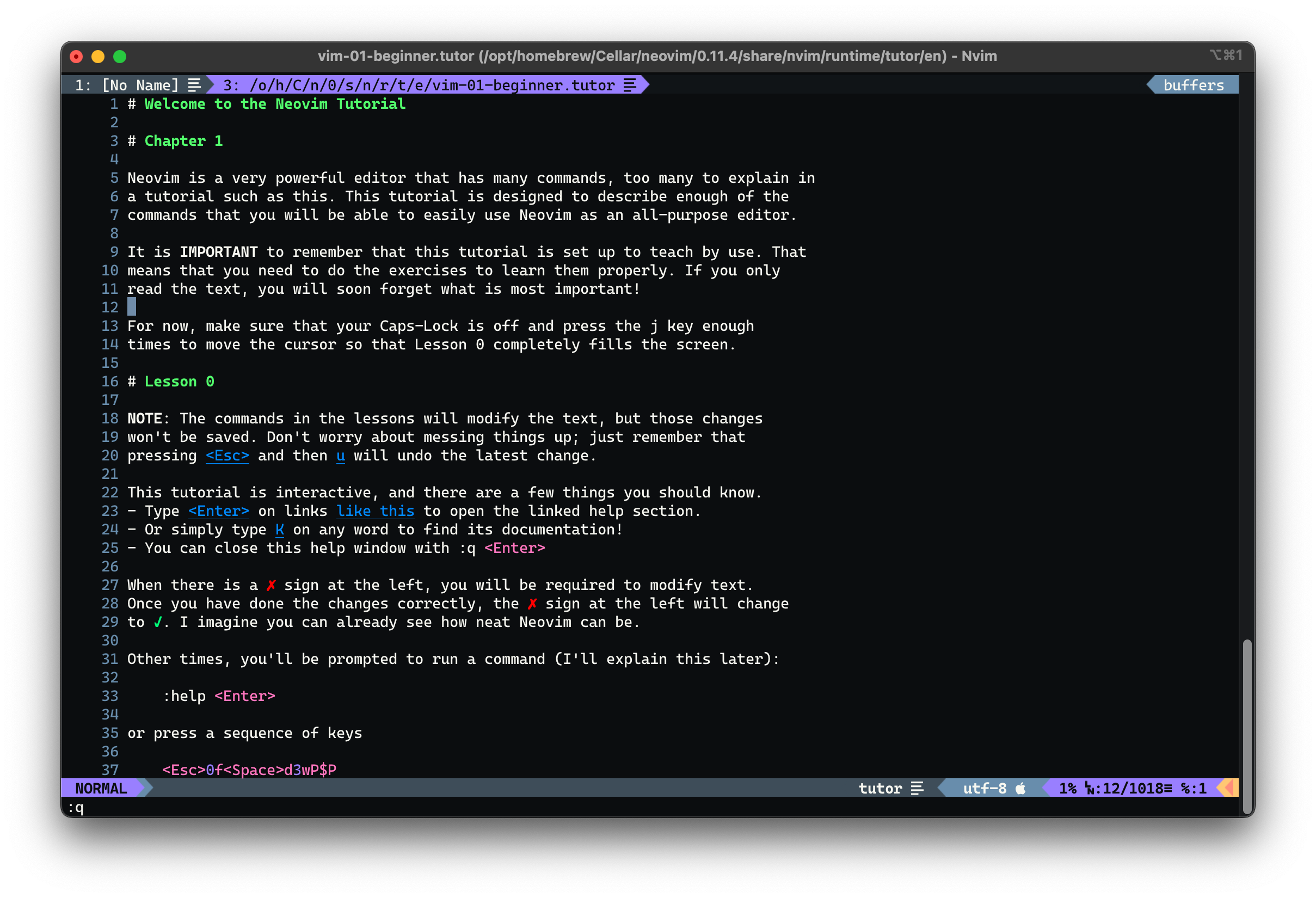 brew install neovim.Once you get it installed, the way that helped me get used to it the most was literally the built-in
